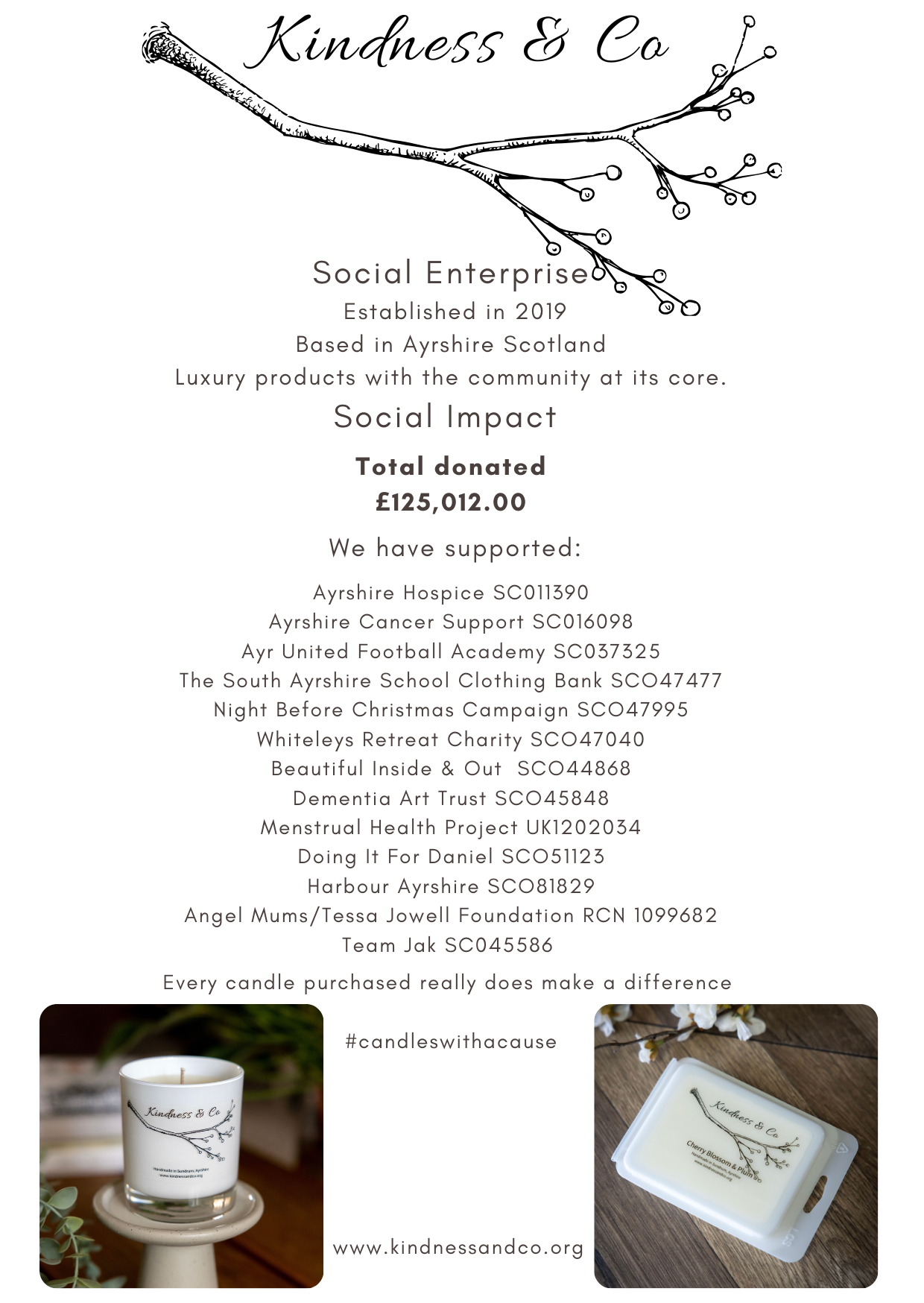 I'm so pleased to have a subscription to Kindness & Co monthly candles. Not only are they helping out local charities, but the scents are gorgeous. I light one at night and pop on some relaxing music and I'm blissed out. It's great that i can easily donate to good local causes in this way and also give candles to friends and family throughout the year.